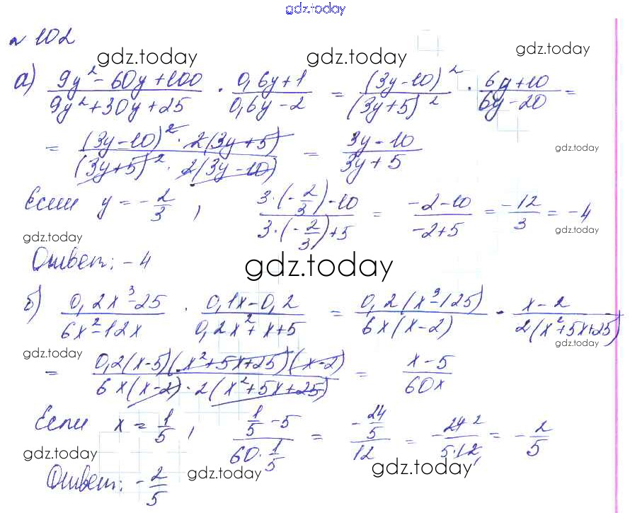 На страницах сайта gdz.today вы найдете учебный и вспомогательный материал, направленный на улучшения знаний школьной программы. ГДЗ - онлайн мир знаний Решение к упражнениям 102 Учебнику по Алгебре для 8 класса Макарычев, Миндюк Углубленный уровень Мнемозина 2014