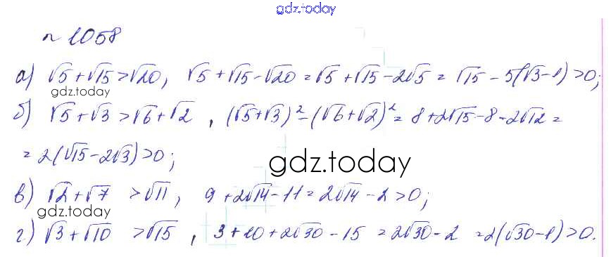 Ответы к Решение к упражнениям 1058 Учебнику по Алгебре для 8 класса Макарычев, Миндюк Углубленный уровень Мнемозина 2014