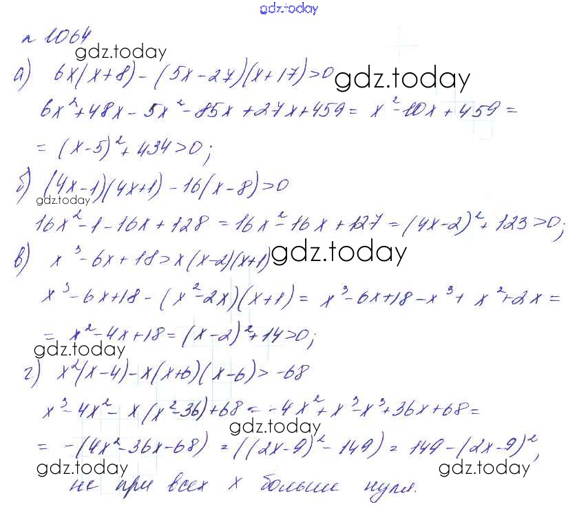 Ответы к Решение к упражнениям 1064 Учебнику по Алгебре для 8 класса Макарычев, Миндюк Углубленный уровень Мнемозина 2014