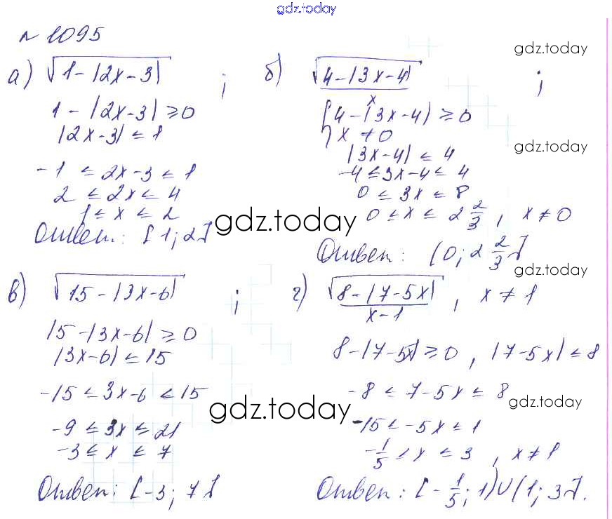 Ответы к Решение к упражнениям 1095 Учебнику по Алгебре для 8 класса Макарычев, Миндюк Углубленный уровень Мнемозина 2014