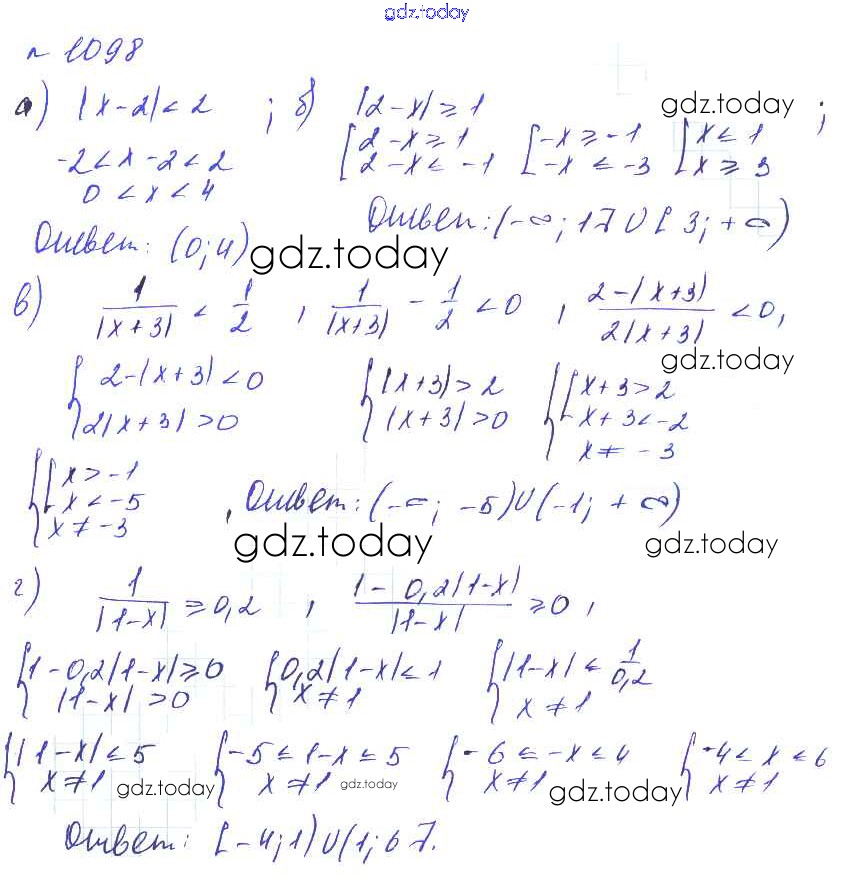 Ответы к Решение к упражнениям 1098 Учебнику по Алгебре для 8 класса Макарычев, Миндюк Углубленный уровень Мнемозина 2014