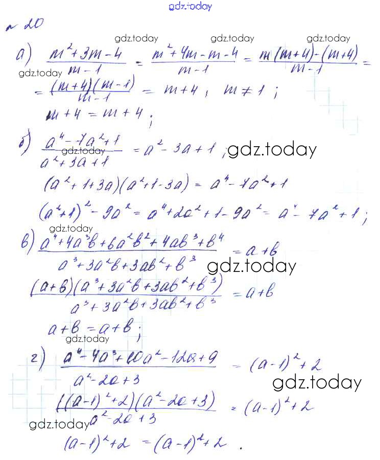 На страницах сайта gdz.today вы найдете учебный и вспомогательный материал, направленный на улучшения знаний школьной программы. ГДЗ - онлайн мир знаний Решение к упражнениям 20 Учебнику по Алгебре для 8 класса Макарычев, Миндюк Углубленный уровень Мнемозина 2014