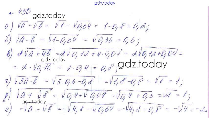 На страницах сайта gdz.today вы найдете учебный и вспомогательный материал, направленный на улучшения знаний школьной программы. ГДЗ - онлайн мир знаний Решение к упражнениям 450 Учебнику по Алгебре для 8 класса Макарычев, Миндюк Углубленный уровень Мнемозина 2014