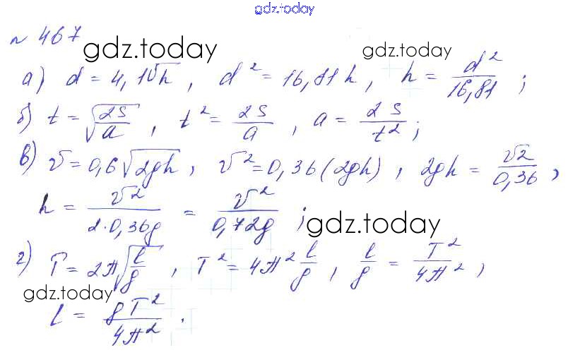 Ответы к Решение к упражнениям 467 Учебнику по Алгебре для 8 класса Макарычев, Миндюк Углубленный уровень Мнемозина 2014