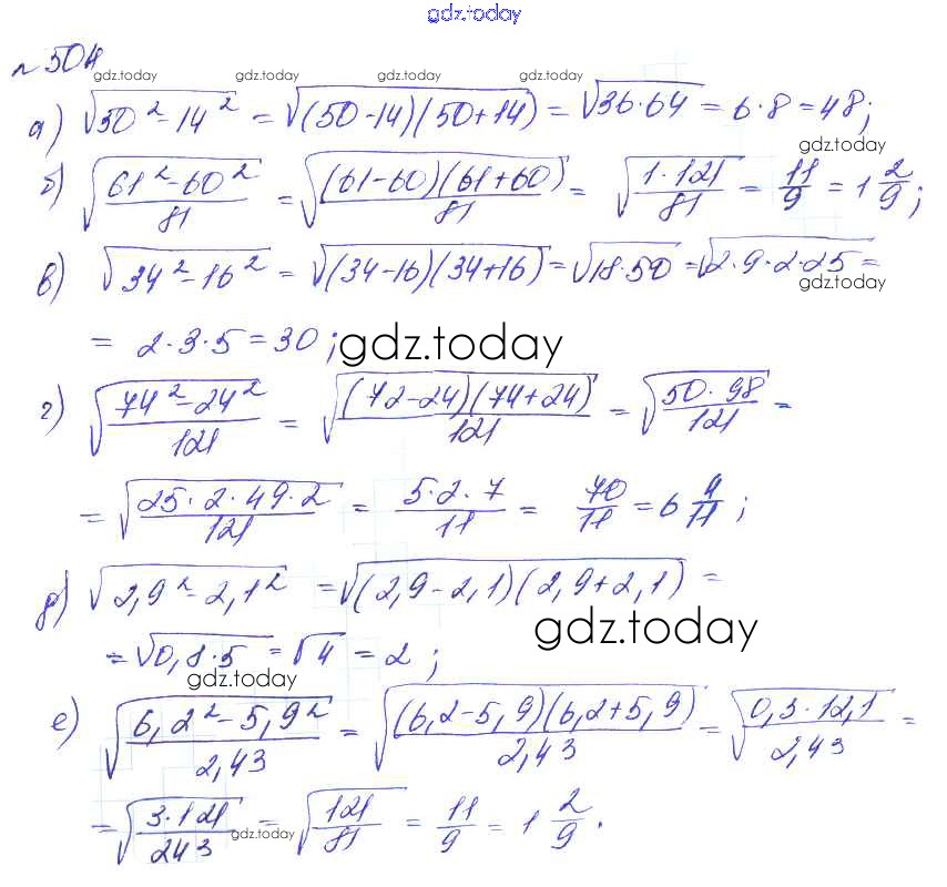 На страницах сайта gdz.today вы найдете учебный и вспомогательный материал, направленный на улучшения знаний школьной программы. ГДЗ - онлайн мир знаний Решение к упражнениям 504 Учебнику по Алгебре для 8 класса Макарычев, Миндюк Углубленный уровень Мнемозина 2014
