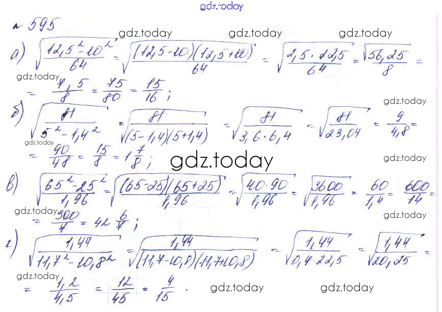 На страницах сайта gdz.today вы найдете учебный и вспомогательный материал, направленный на улучшения знаний школьной программы. ГДЗ - онлайн мир знаний Решение к упражнениям 595 Учебнику по Алгебре для 8 класса Макарычев, Миндюк Углубленный уровень Мнемозина 2014