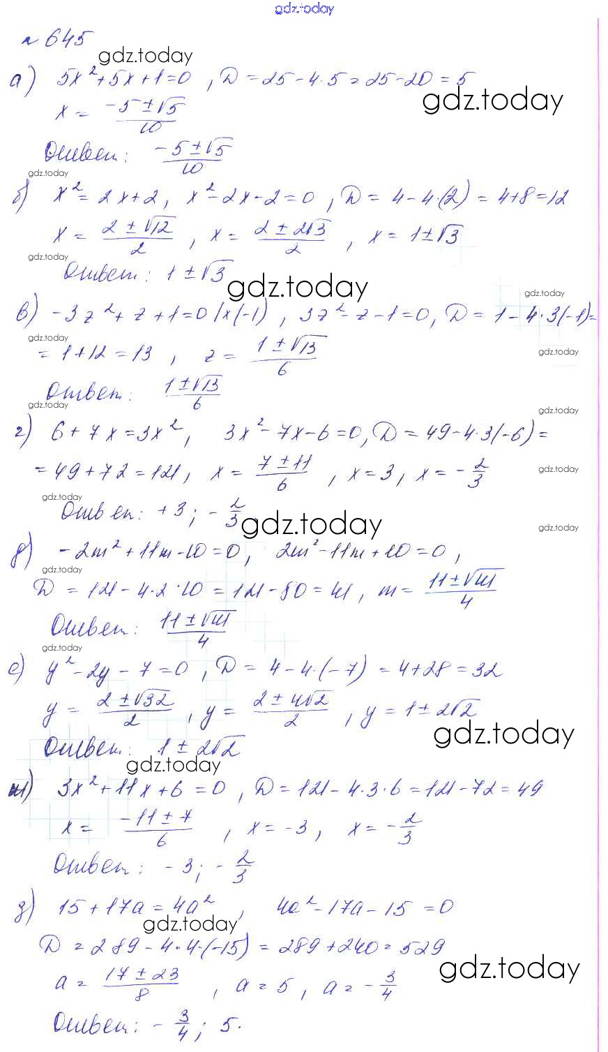 Ответы к Решение к упражнениям 645 Учебнику по Алгебре для 8 класса Макарычев, Миндюк Углубленный уровень Мнемозина 2014