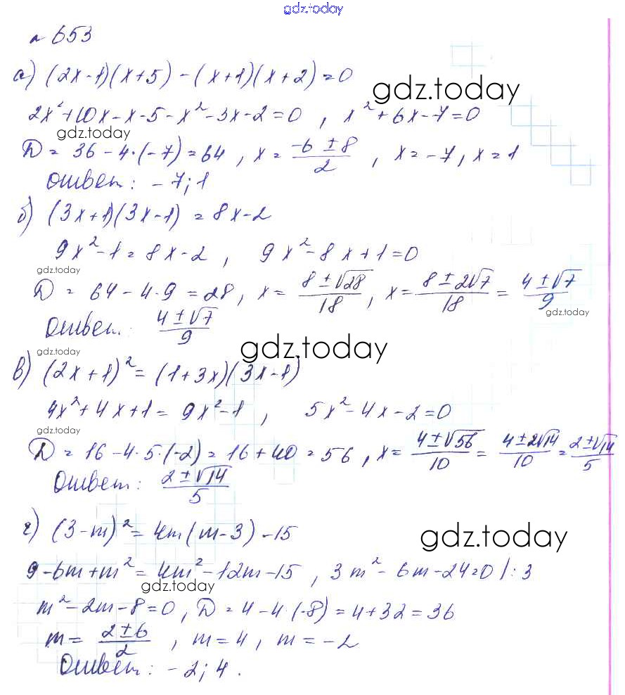 Ответы к Решение к упражнениям 653 Учебнику по Алгебре для 8 класса Макарычев, Миндюк Углубленный уровень Мнемозина 2014