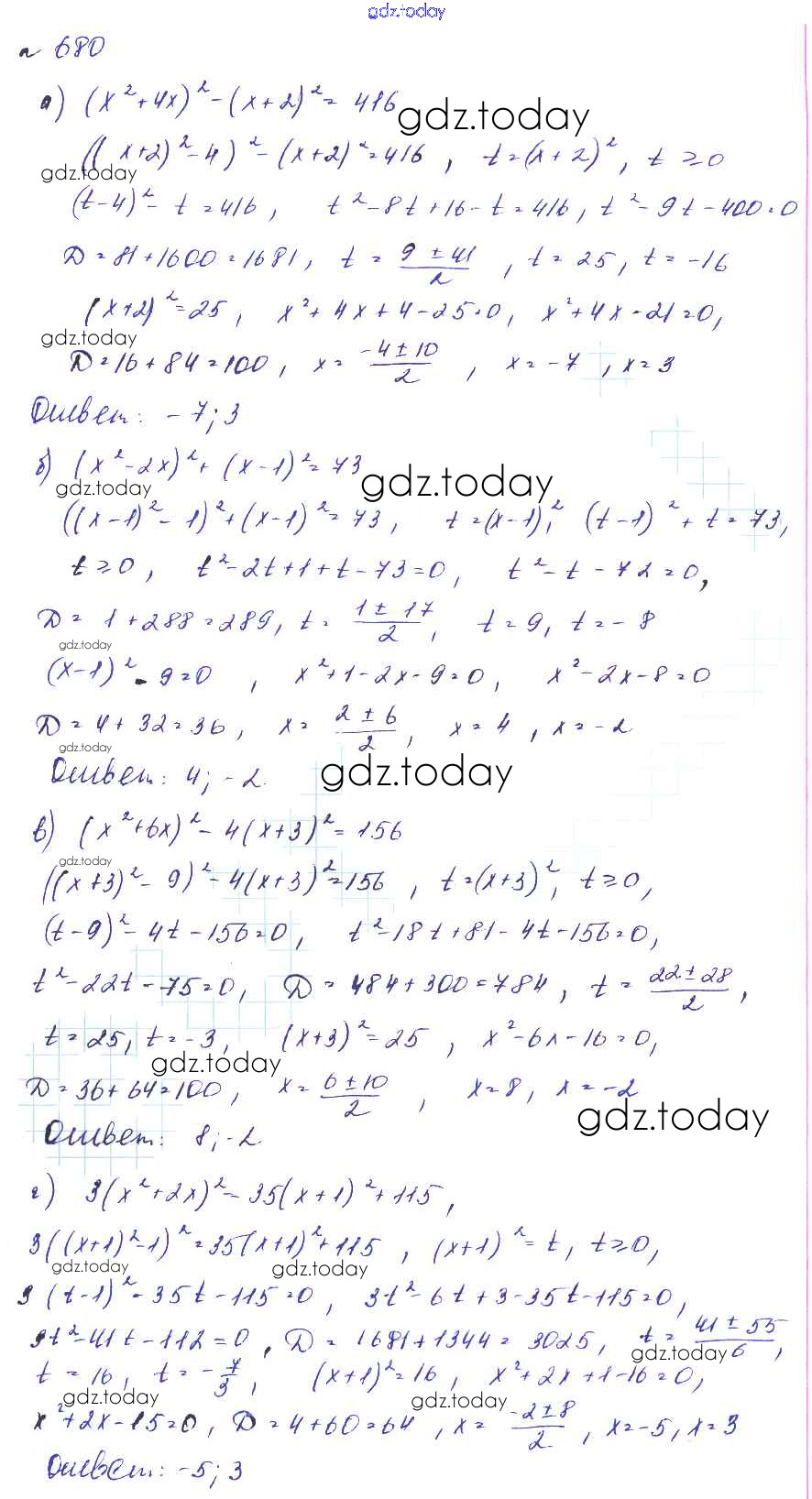 Ответы к Решение к упражнениям 680 Учебнику по Алгебре для 8 класса Макарычев, Миндюк Углубленный уровень Мнемозина 2014