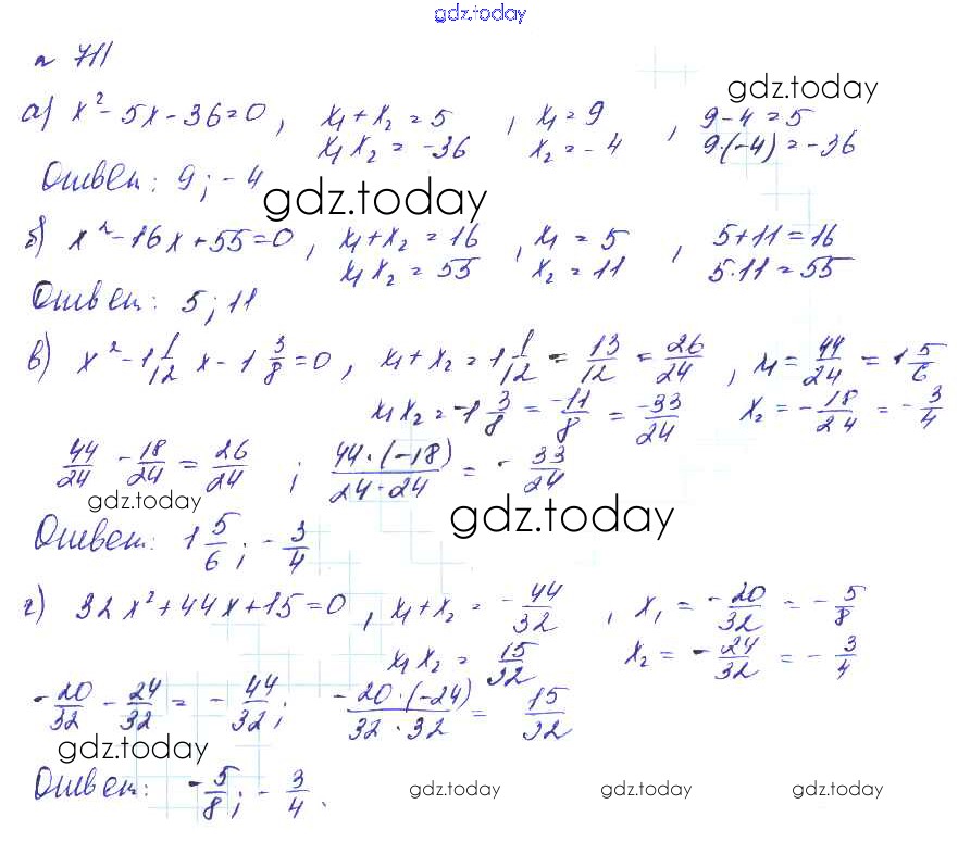 Ответы к Решение к упражнениям 711 Учебнику по Алгебре для 8 класса Макарычев, Миндюк Углубленный уровень Мнемозина 2014