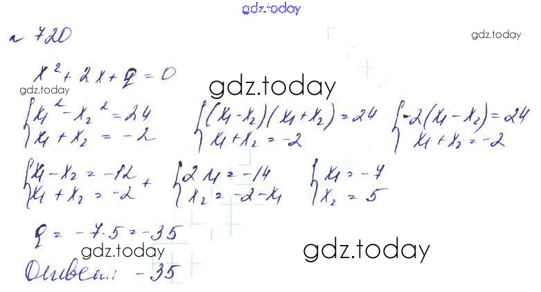 Ответы к Решение к упражнениям 720 Учебнику по Алгебре для 8 класса Макарычев, Миндюк Углубленный уровень Мнемозина 2014