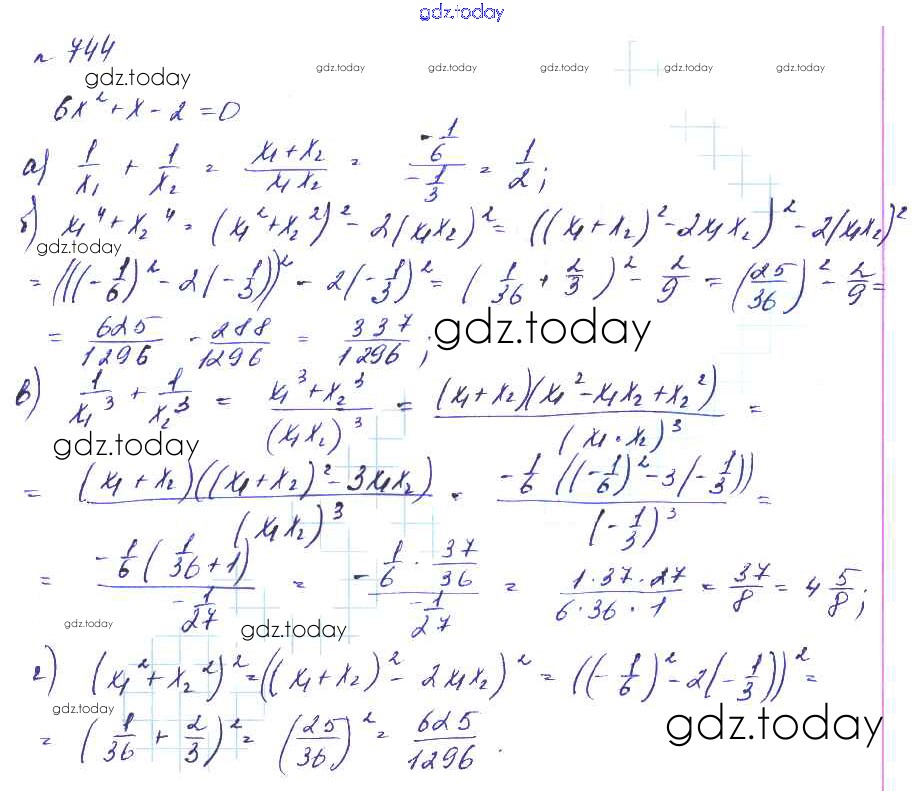 Ответы к Решение к упражнениям 744 Учебнику по Алгебре для 8 класса Макарычев, Миндюк Углубленный уровень Мнемозина 2014