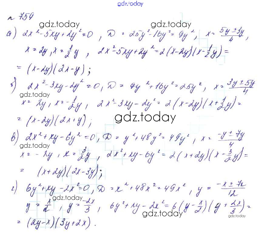 Ответы к Решение к упражнениям 759 Учебнику по Алгебре для 8 класса Макарычев, Миндюк Углубленный уровень Мнемозина 2014