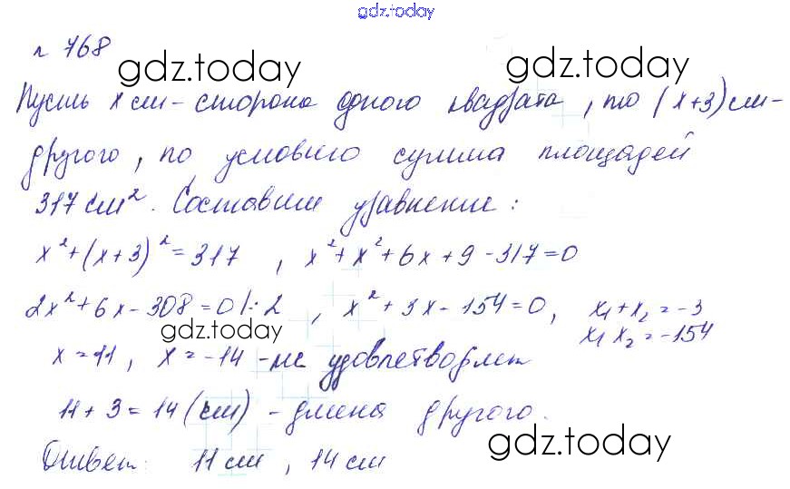 Ответы к Решение к упражнениям 768 Учебнику по Алгебре для 8 класса Макарычев, Миндюк Углубленный уровень Мнемозина 2014
