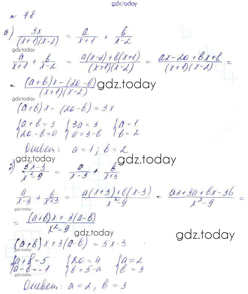 Ответы к Решение к упражнениям 78 Учебнику по Алгебре для 8 класса Макарычев, Миндюк Углубленный уровень Мнемозина 2014