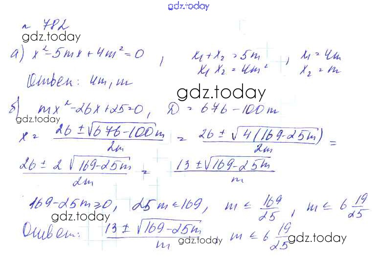 Ответы к Решение к упражнениям 782 Учебнику по Алгебре для 8 класса Макарычев, Миндюк Углубленный уровень Мнемозина 2014