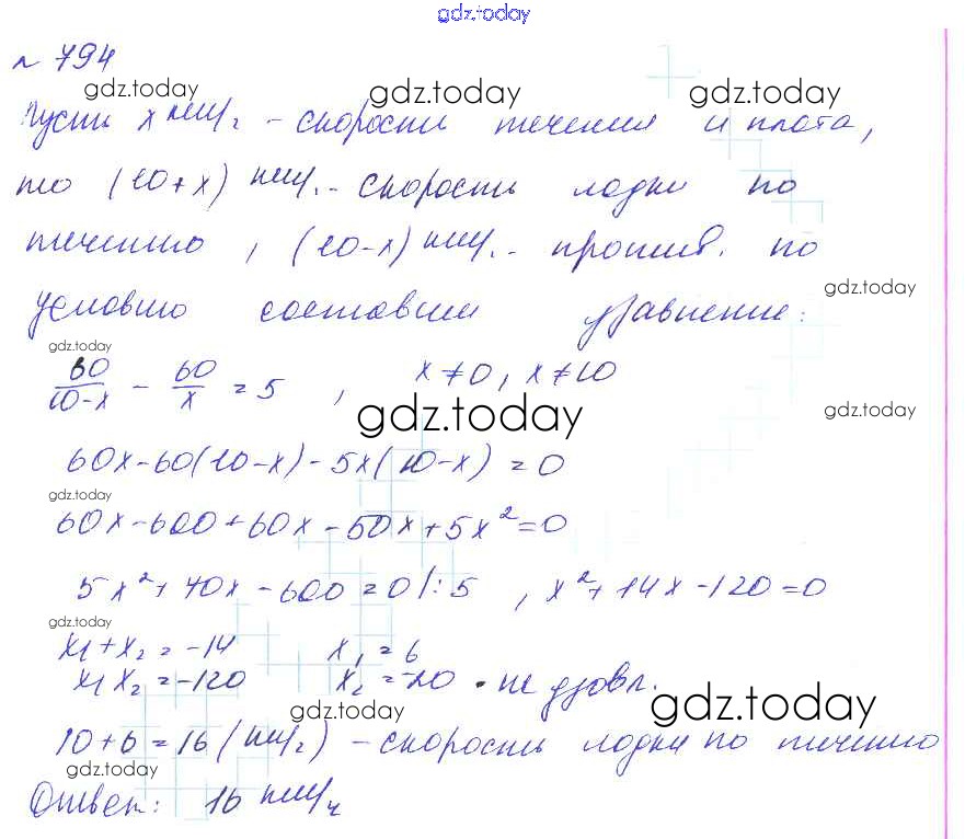Ответы к Решение к упражнениям 794 Учебнику по Алгебре для 8 класса Макарычев, Миндюк Углубленный уровень Мнемозина 2014
