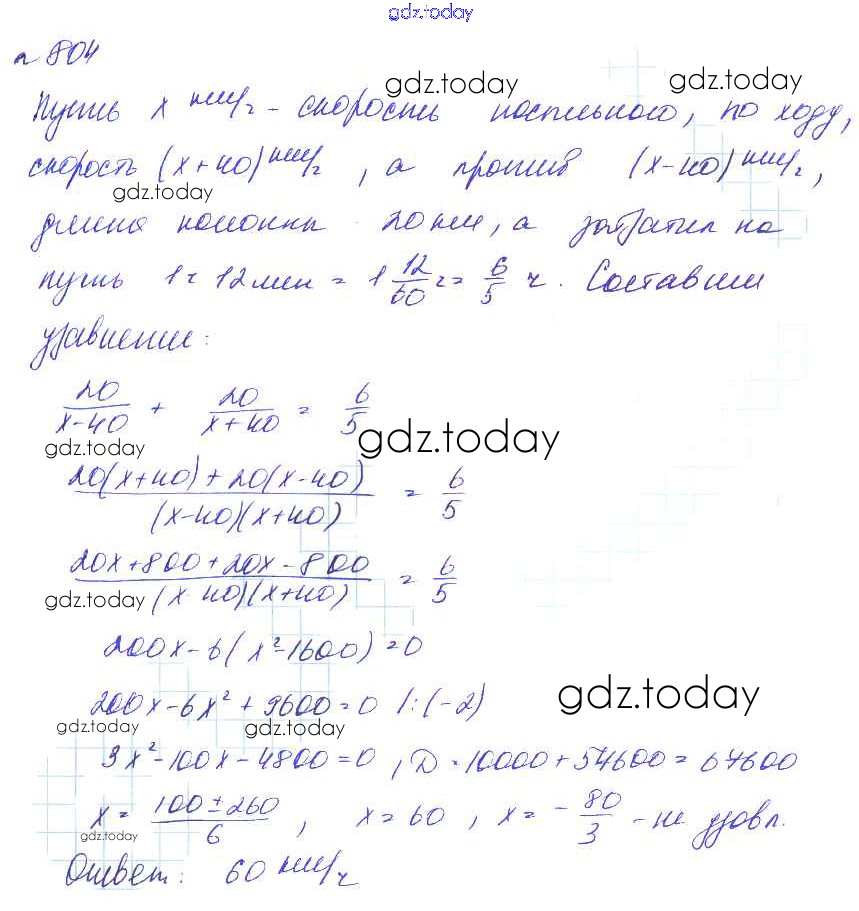 Ответы к Решение к упражнениям 804 Учебнику по Алгебре для 8 класса Макарычев, Миндюк Углубленный уровень Мнемозина 2014