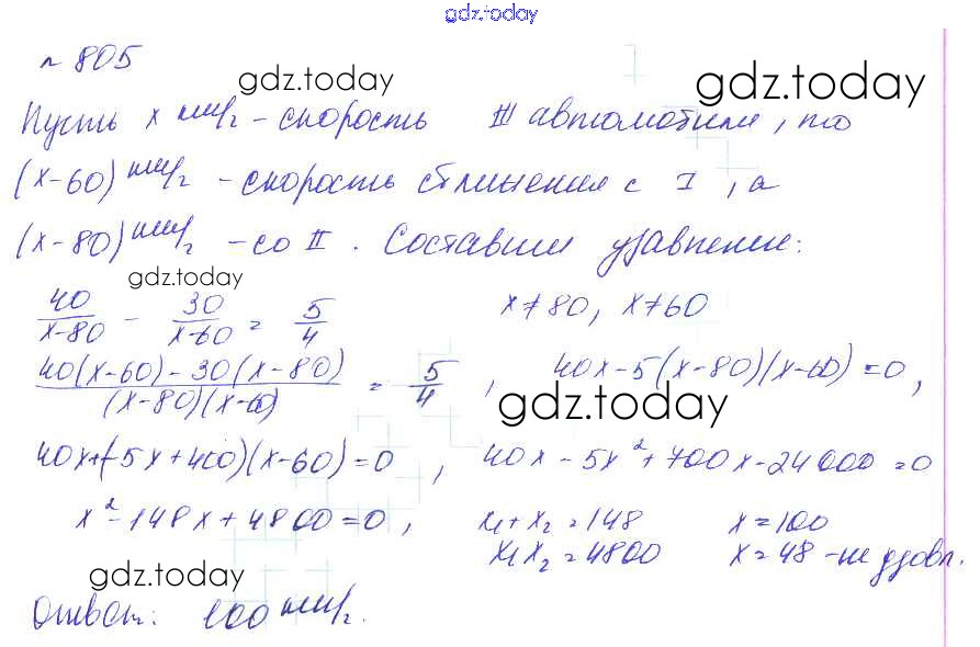 Ответы к Решение к упражнениям 805 Учебнику по Алгебре для 8 класса Макарычев, Миндюк Углубленный уровень Мнемозина 2014