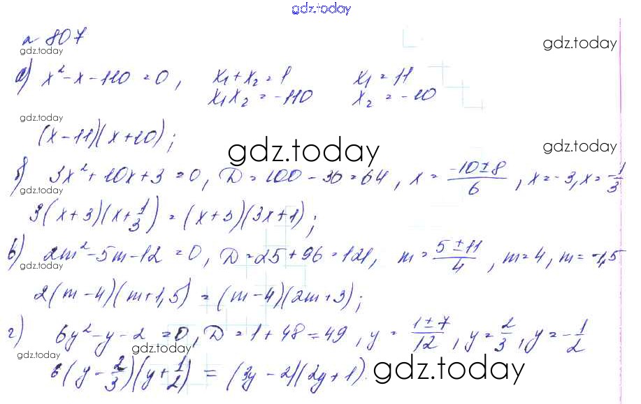 Ответы к Решение к упражнениям 807 Учебнику по Алгебре для 8 класса Макарычев, Миндюк Углубленный уровень Мнемозина 2014