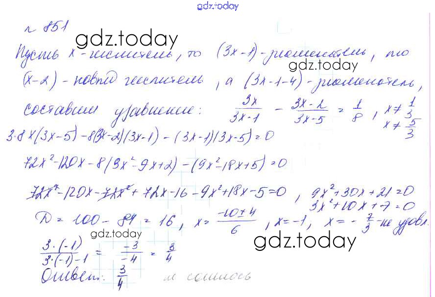 Ответы к Решение к упражнениям 851 Учебнику по Алгебре для 8 класса Макарычев, Миндюк Углубленный уровень Мнемозина 2014