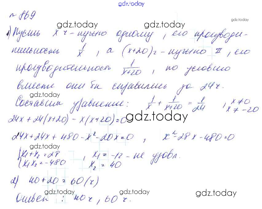 Ответы к Решение к упражнениям 869 Учебнику по Алгебре для 8 класса Макарычев, Миндюк Углубленный уровень Мнемозина 2014