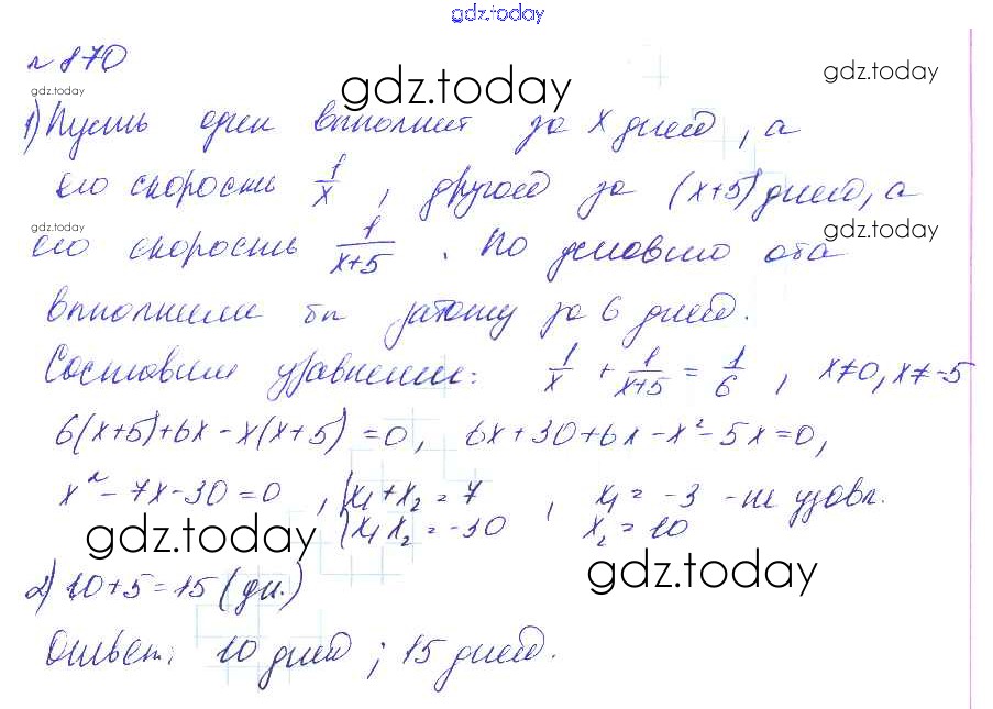 Ответы к Решение к упражнениям 870 Учебнику по Алгебре для 8 класса Макарычев, Миндюк Углубленный уровень Мнемозина 2014