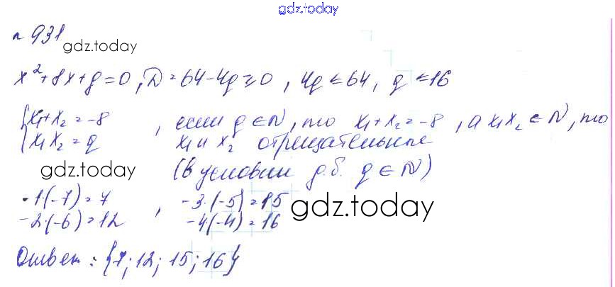 Ответы к Решение к упражнениям 931 Учебнику по Алгебре для 8 класса Макарычев, Миндюк Углубленный уровень Мнемозина 2014