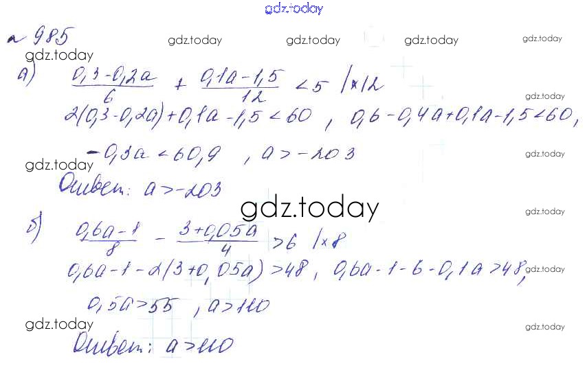 Ответы к Решение к упражнениям 985 Учебнику по Алгебре для 8 класса Макарычев, Миндюк Углубленный уровень Мнемозина 2014