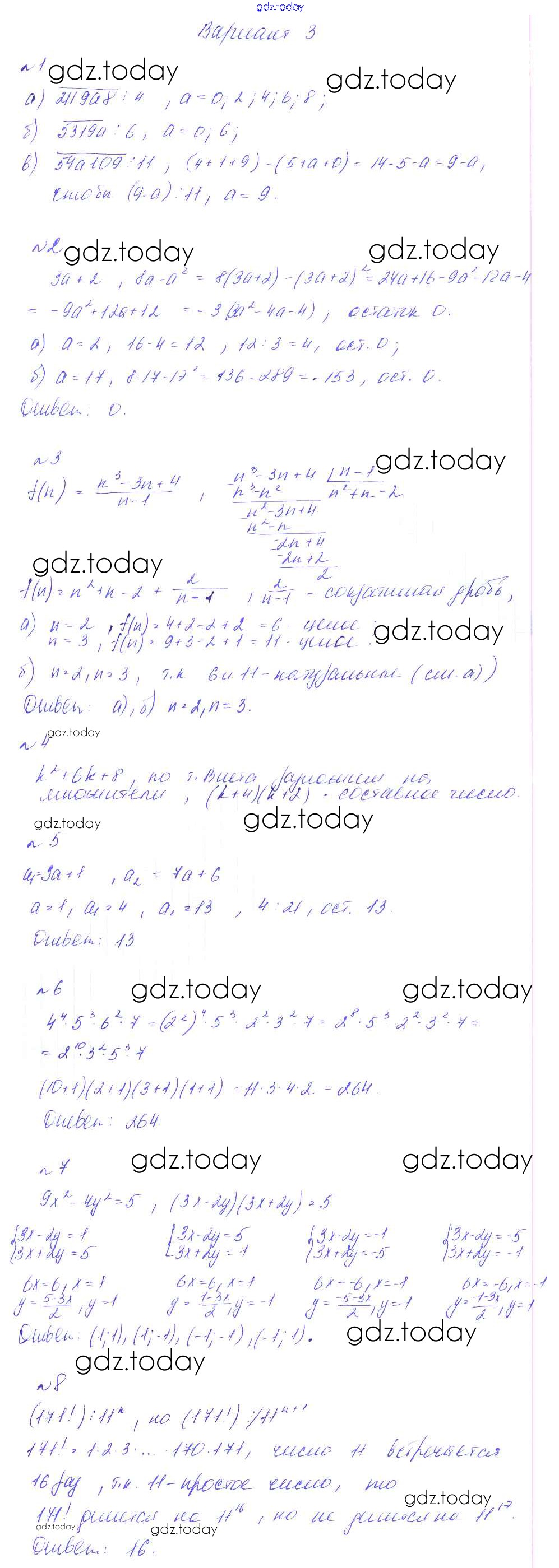 На страницах сайта gdz.today вы найдете учебный и вспомогательный материал, направленный на улучшения знаний школьной программы. ГДЗ - онлайн мир знаний КР-2. Целые числа. Делимость чисел Решение к контрольным работам вариант 3 Дидактическим материалам по Алгебре для 8 класса Феоктистов Мнемозина 2013