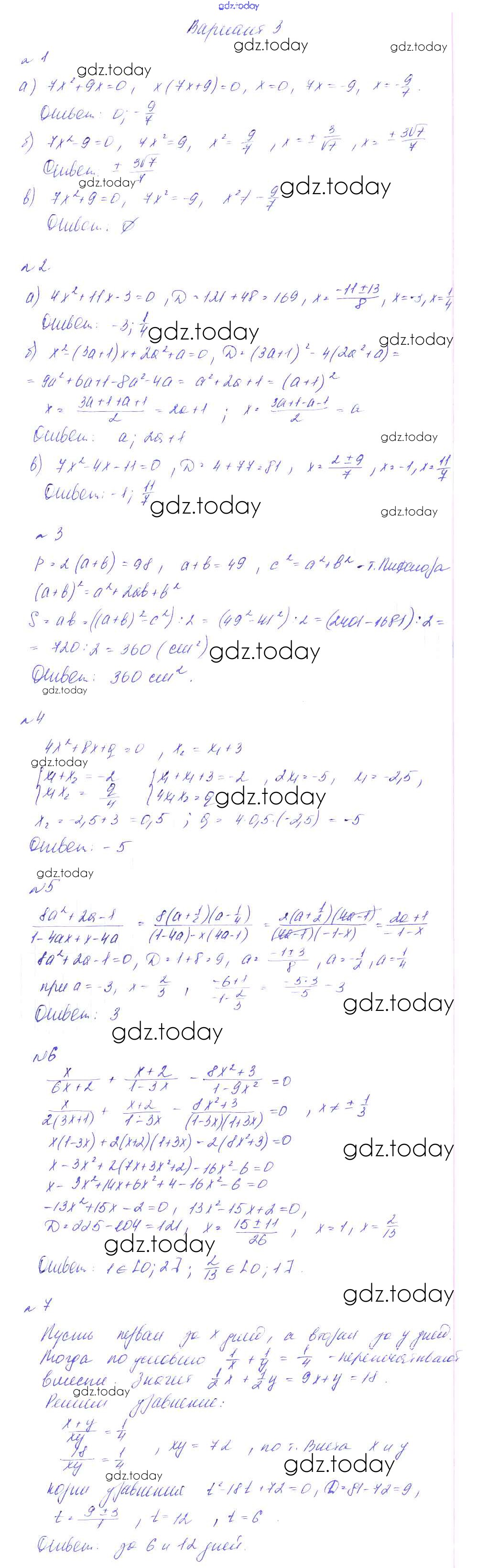 На страницах сайта gdz.today вы найдете учебный и вспомогательный материал, направленный на улучшения знаний школьной программы. ГДЗ - онлайн мир знаний КР-4. Квадратные уравнения Решение к контрольным работам вариант 3 Дидактическим материалам по Алгебре для 8 класса Феоктистов Мнемозина 2013