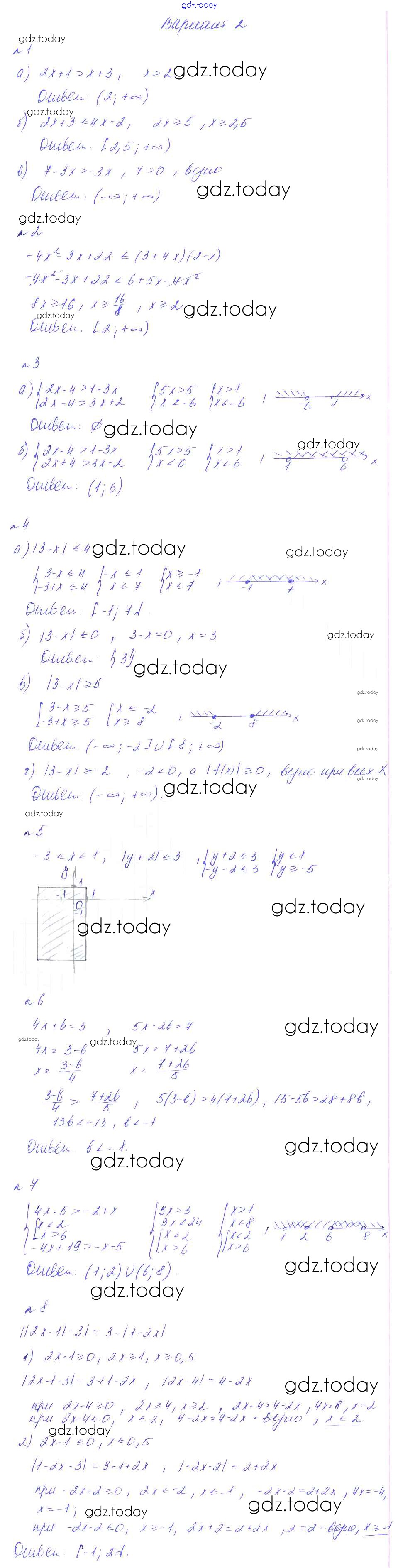 На страницах сайта gdz.today вы найдете учебный и вспомогательный материал, направленный на улучшения знаний школьной программы. ГДЗ - онлайн мир знаний КР-5. Неравенства Решение к контрольным работам вариант 2 Дидактическим материалам по Алгебре для 8 класса Феоктистов Мнемозина 2013