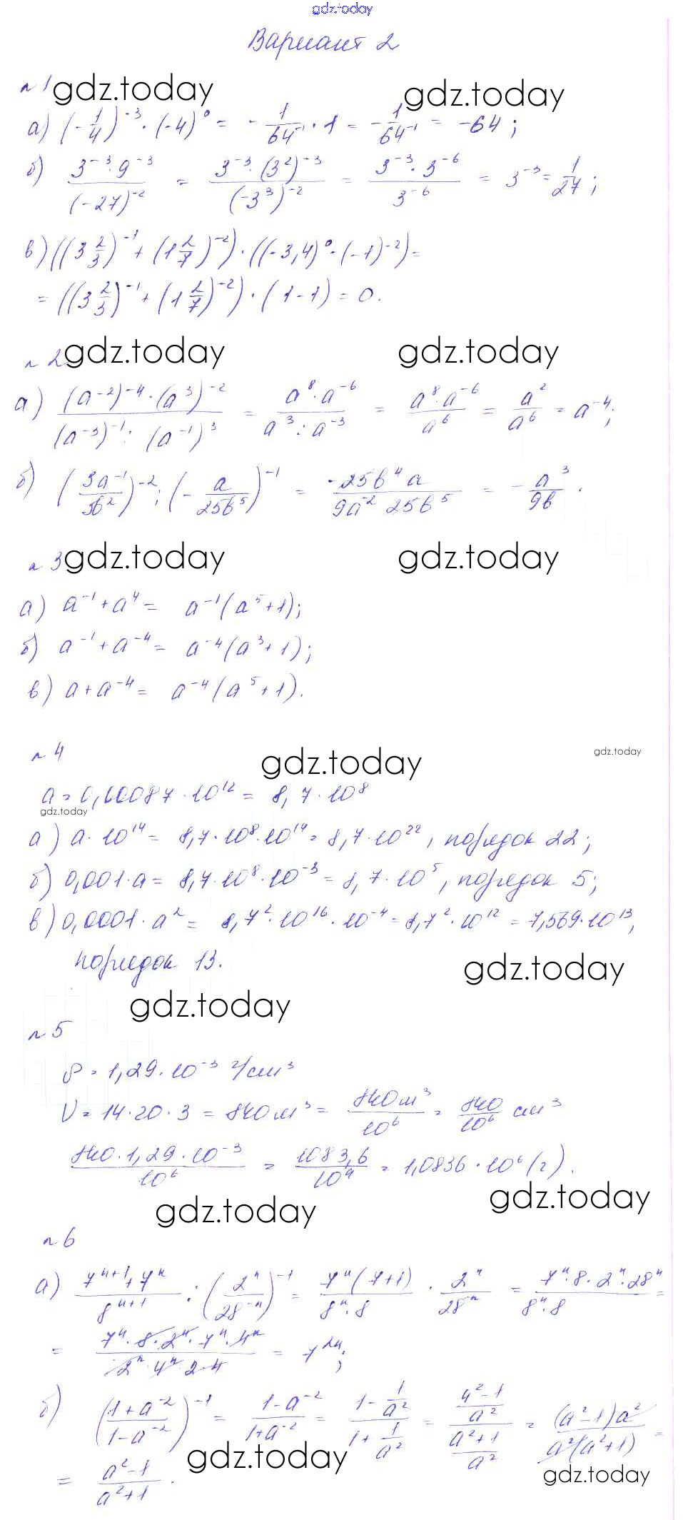 Ответы к КР-6. Степень с целым показателем Решение к контрольным работам вариант 2 Дидактическим материалам по Алгебре для 8 класса Феоктистов Мнемозина 2013