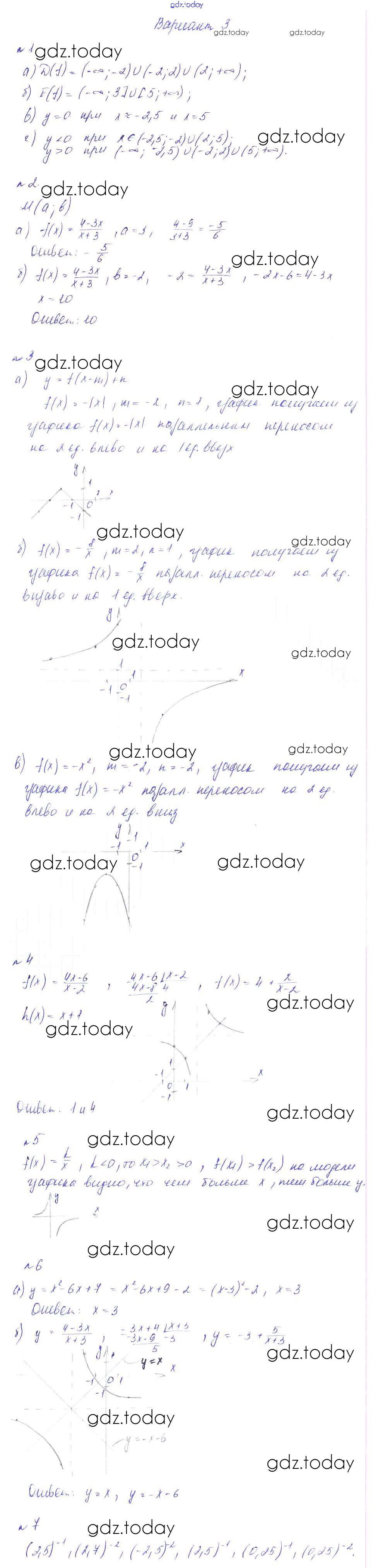 На страницах сайта gdz.today вы найдете учебный и вспомогательный материал, направленный на улучшения знаний школьной программы. ГДЗ - онлайн мир знаний КР-7. Функции и графики Решение к контрольным работам вариант 3 Дидактическим материалам по Алгебре для 8 класса Феоктистов Мнемозина 2013