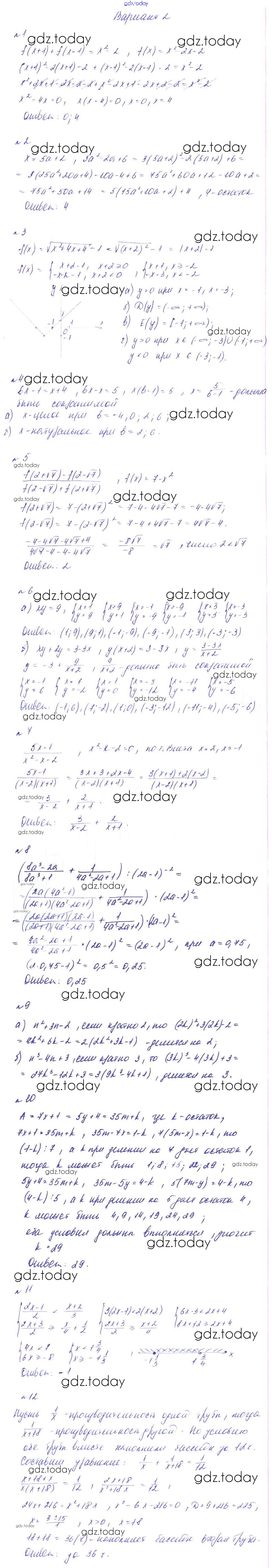 На страницах сайта gdz.today вы найдете учебный и вспомогательный материал, направленный на улучшения знаний школьной программы. ГДЗ - онлайн мир знаний Итоговая КР Решение к контрольным работам вариант 2 Дидактическим материалам по Алгебре для 8 класса Феоктистов Мнемозина 2013