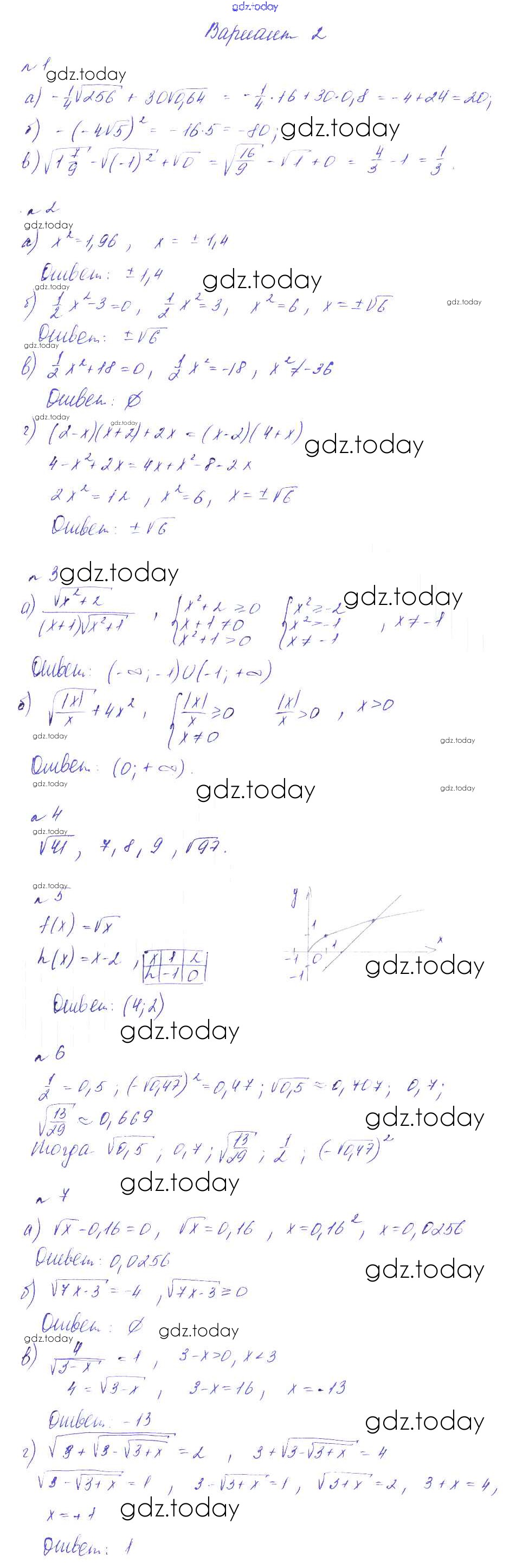 На страницах сайта gdz.today вы найдете учебный и вспомогательный материал, направленный на улучшения знаний школьной программы. ГДЗ - онлайн мир знаний СР-10. Арифметические квадратный корень. Функция y = √x Решение к самостоятельным работам вариант 2 Дидактическим материалам по Алгебре для 8 класса Феоктистов Мнемозина 2013