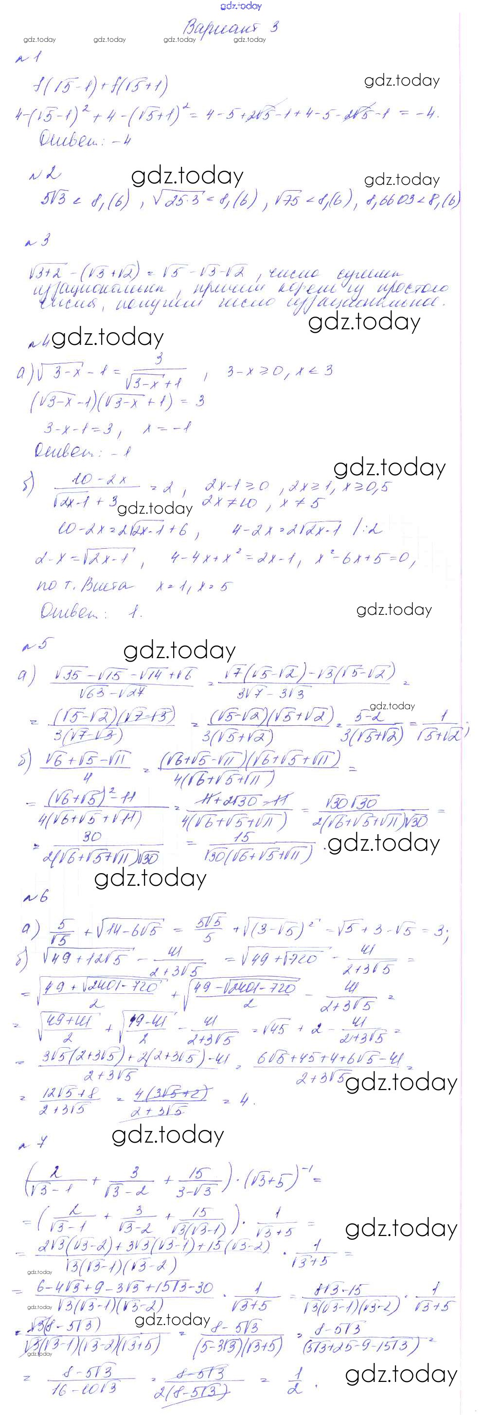 На страницах сайта gdz.today вы найдете учебный и вспомогательный материал, направленный на улучшения знаний школьной программы. ГДЗ - онлайн мир знаний СР-12. Преобразование сложных радикалов Решение к самостоятельным работам вариант 3 Дидактическим материалам по Алгебре для 8 класса Феоктистов Мнемозина 2013
