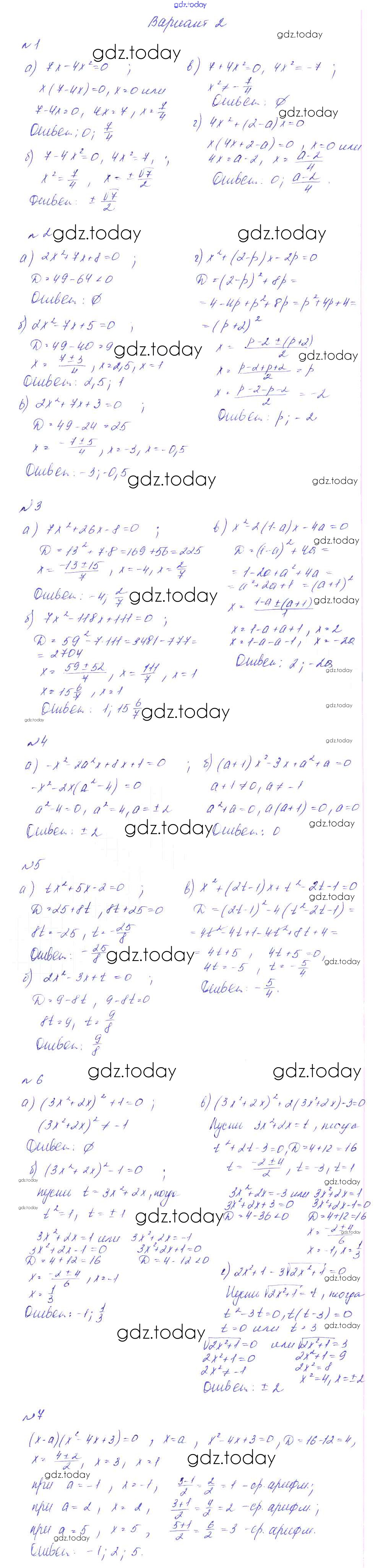 Ответы к СР-13. Квадратные уравнения Решение к самостоятельным работам вариант 2 Дидактическим материалам по Алгебре для 8 класса Феоктистов Мнемозина 2013