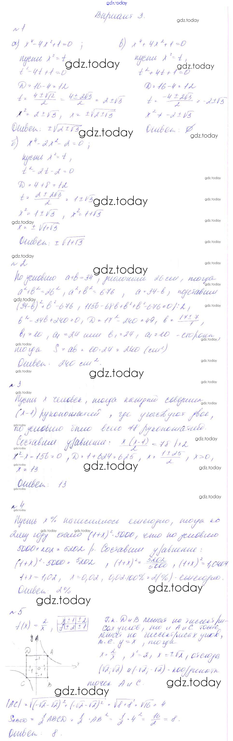 Ответы к СР-14. Биквадратные уравнения. Решение задач с помощью квадратных уравнений Решение к самостоятельным работам вариант 3 Дидактическим материалам по Алгебре для 8 класса Феоктистов Мнемозина 2013