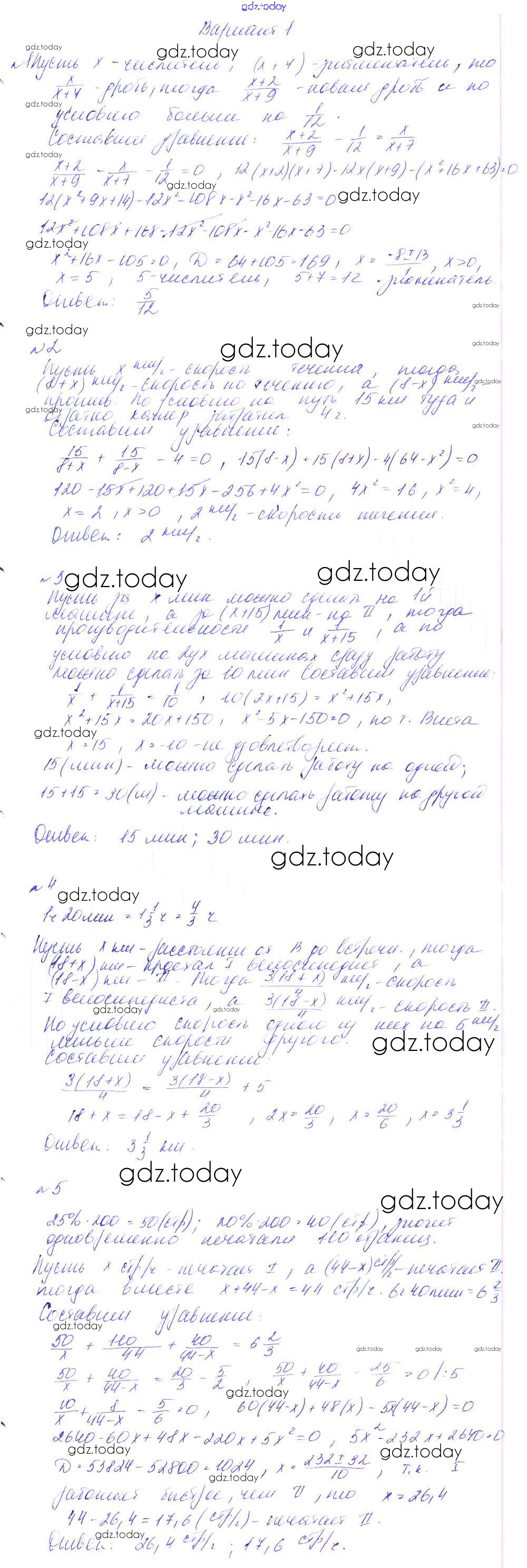 Ответы к СР-17. Решение задач с помощью дробно-рациональных уравнений Решение к самостоятельным работам вариант 1 Дидактическим материалам по Алгебре для 8 класса Феоктистов Мнемозина 2013