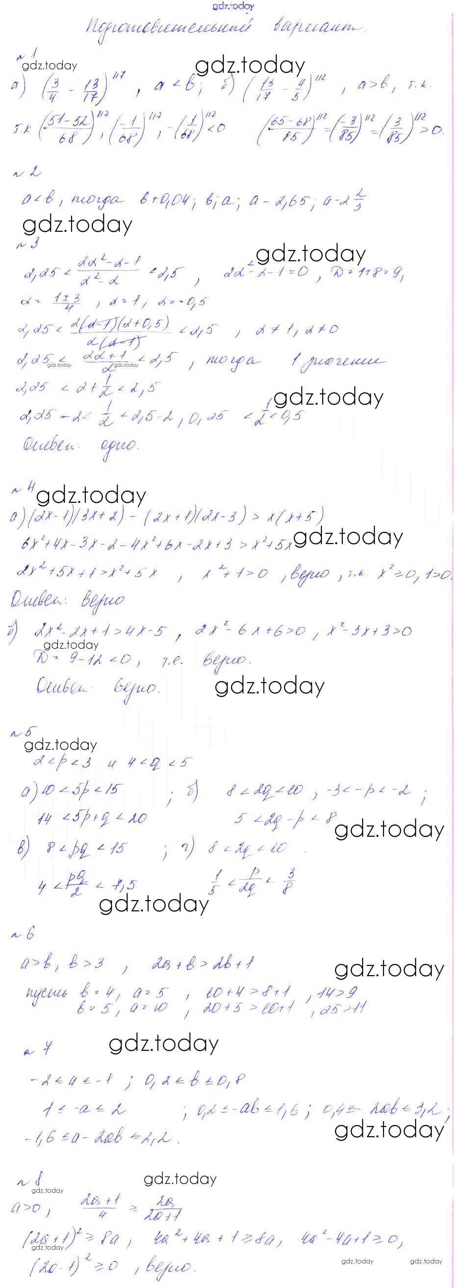 На страницах сайта gdz.today вы найдете учебный и вспомогательный материал, направленный на улучшения знаний школьной программы. ГДЗ - онлайн мир знаний СР-18. Свойства числовых неравенств, оценка значений выражений, доказательство неравенств Решение к самостоятельным работам подготовительный вариант Дидактическим материалам по Алгебре для 8 класса Феоктистов Мнемозина 2013