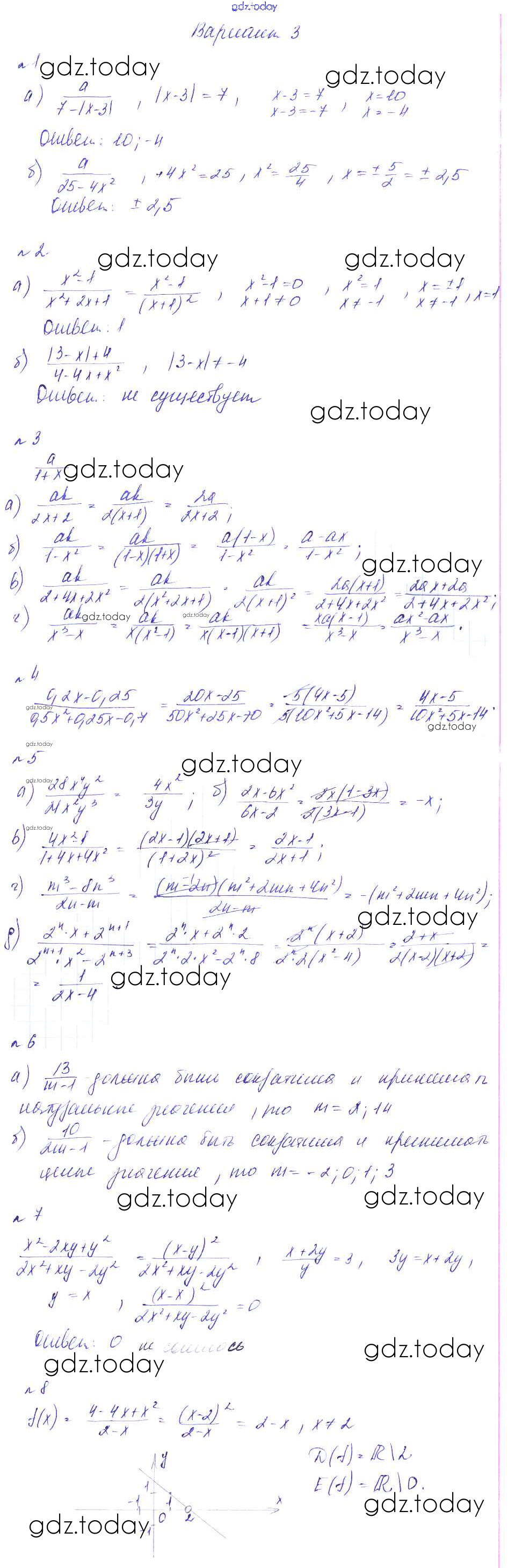 На страницах сайта gdz.today вы найдете учебный и вспомогательный материал, направленный на улучшения знаний школьной программы. ГДЗ - онлайн мир знаний СР-2. Дроби и их свойства Решение к самостоятельным работам вариант 3 Дидактическим материалам по Алгебре для 8 класса Феоктистов Мнемозина 2013