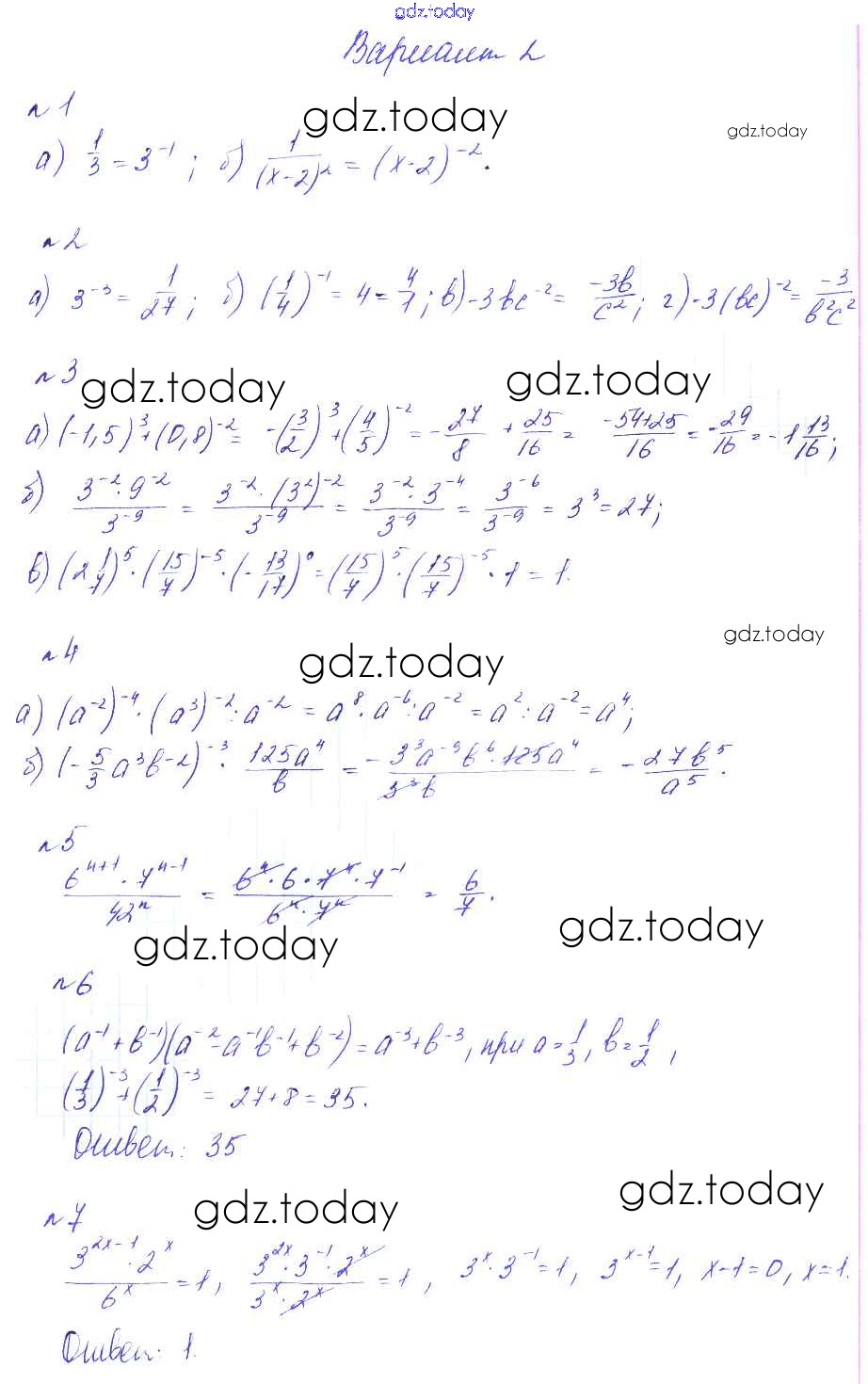 На страницах сайта gdz.today вы найдете учебный и вспомогательный материал, направленный на улучшения знаний школьной программы. ГДЗ - онлайн мир знаний СР-21. Степень с целым показателем и её свойства Решение к самостоятельным работам вариант 2 Дидактическим материалам по Алгебре для 8 класса Феоктистов Мнемозина 2013