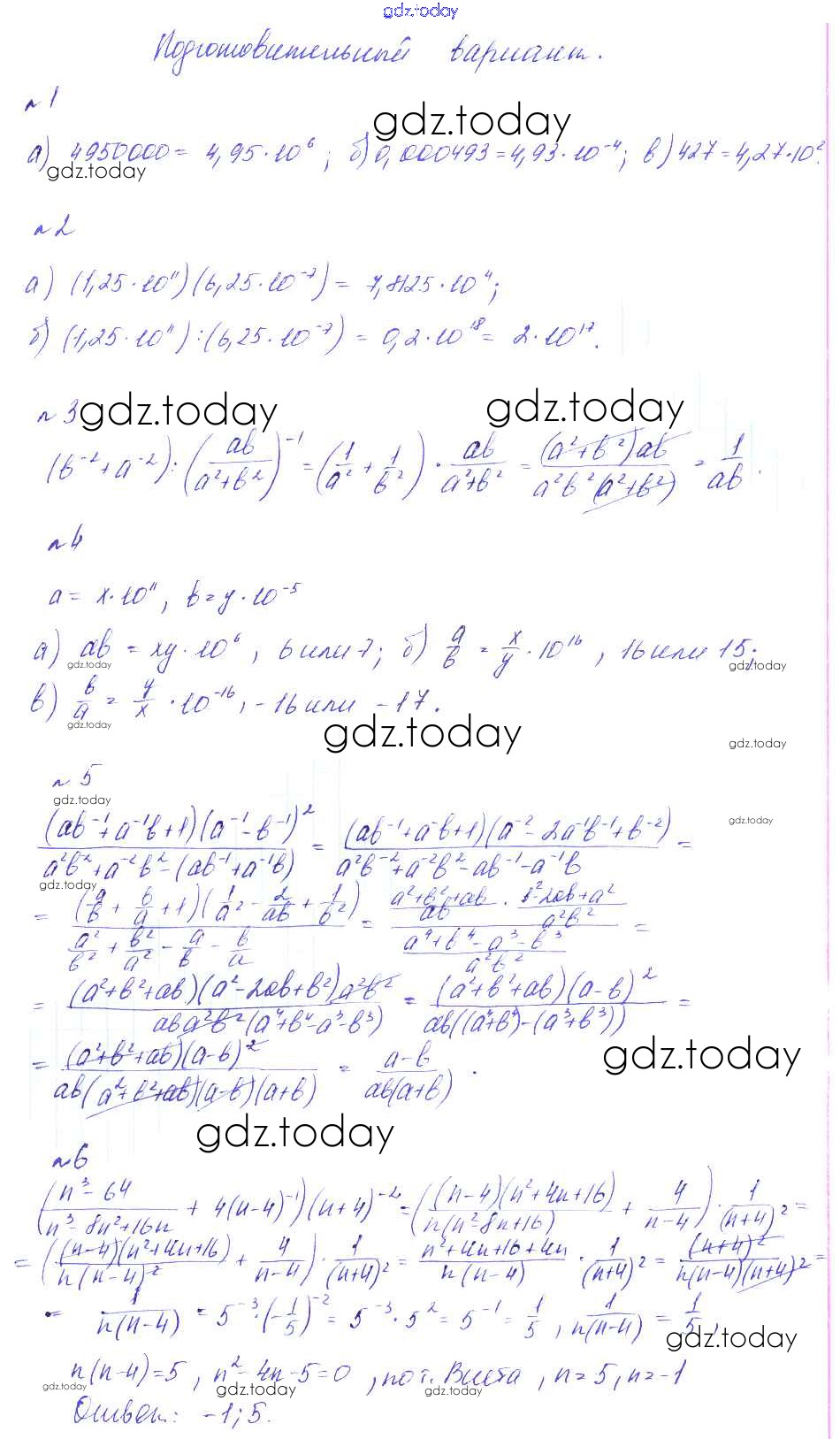 На страницах сайта gdz.today вы найдете учебный и вспомогательный материал, направленный на улучшения знаний школьной программы. ГДЗ - онлайн мир знаний СР-22. Преобразование выражений, содержащих степени с целыми показателями. Стандартный вид числа Решение к самостоятельным работам подготовительный вариант Дидактическим материалам по Алгебре для 8 класса Феоктистов Мнемозина 2013