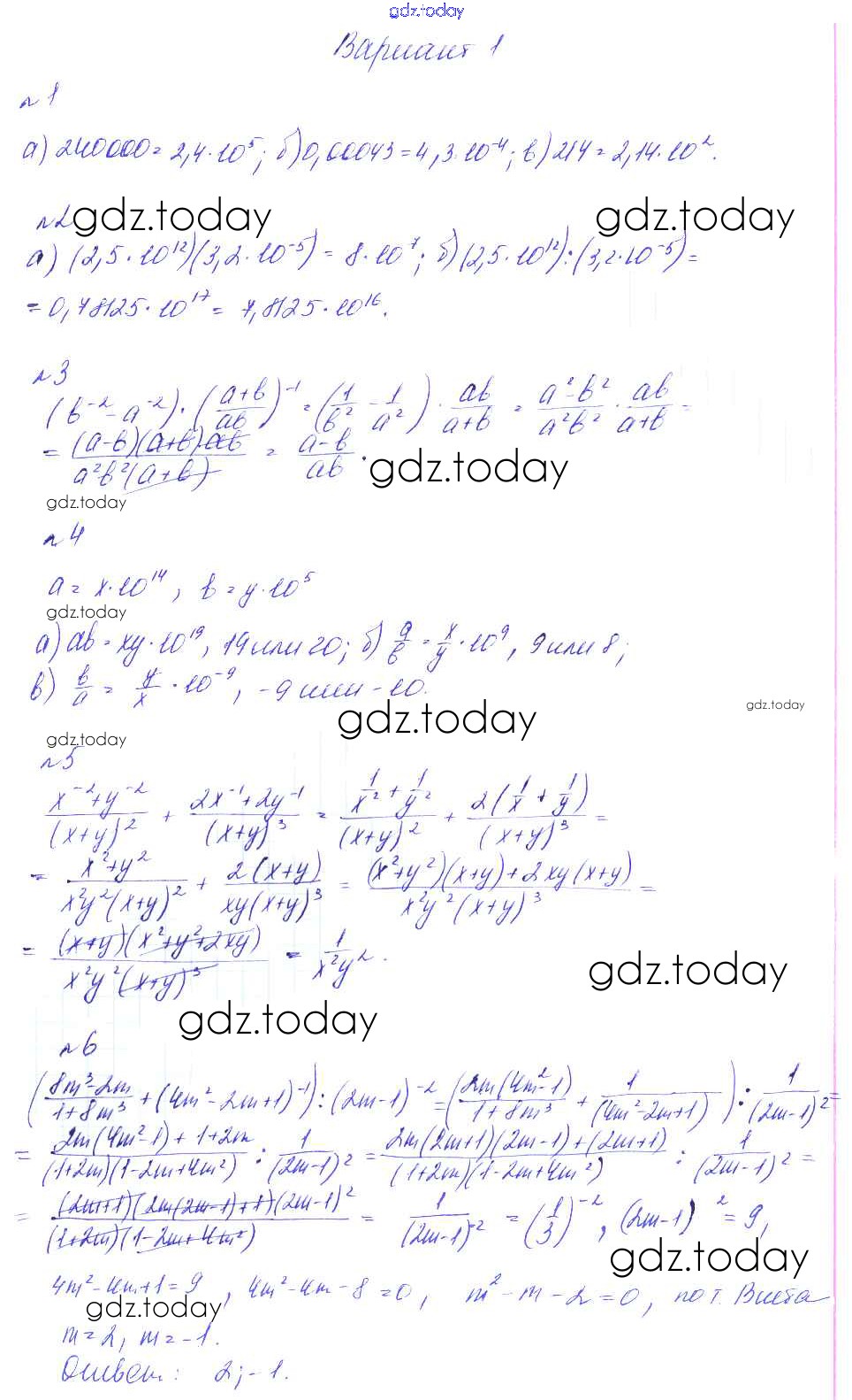 Ответы к СР-22. Преобразование выражений, содержащих степени с целыми показателями. Стандартный вид числа Решение к самостоятельным работам вариант 1 Дидактическим материалам по Алгебре для 8 класса Феоктистов Мнемозина 2013
