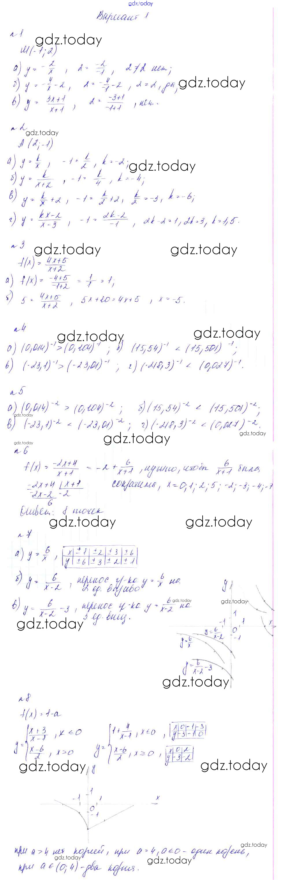 На страницах сайта gdz.today вы найдете учебный и вспомогательный материал, направленный на улучшения знаний школьной программы. ГДЗ - онлайн мир знаний СР-24. Функции y = x в минус первой и минус второй степени Решение к самостоятельным работам вариант 1 Дидактическим материалам по Алгебре для 8 класса Феоктистов Мнемозина 2013