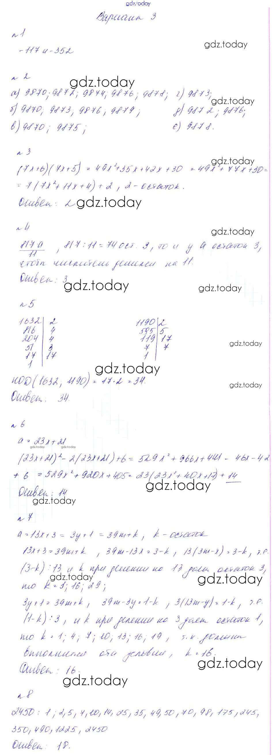 Ответы к СР-8. Деление с остатком, признаки делимости, простые и составные числа Решение к самостоятельным работам вариант 3 Дидактическим материалам по Алгебре для 8 класса Феоктистов Мнемозина 2013