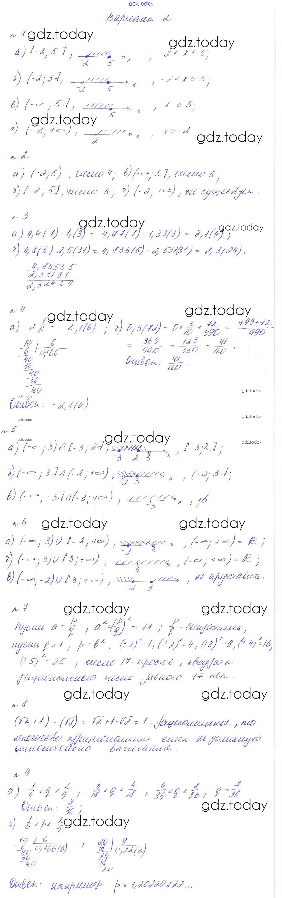 Ответы к СР-9. Рациональные числа, действительные числа, числовые промежутки Решение к самостоятельным работам вариант 2 Дидактическим материалам по Алгебре для 8 класса Феоктистов Мнемозина 2013