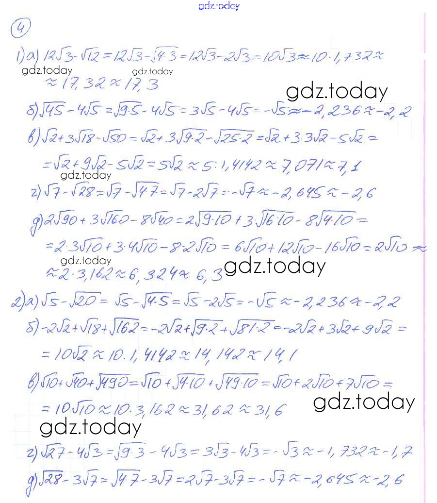 На страницах сайта gdz.today вы найдете учебный и вспомогательный материал, направленный на улучшения знаний школьной программы. ГДЗ - онлайн мир знаний О-14. Преобразование выражений, содержащих квадратные корни Решение к обучающим работам 4 Дидактическим материалам по Алгебре для 8 класса Евстафьева, Карп Просвещение 2017
