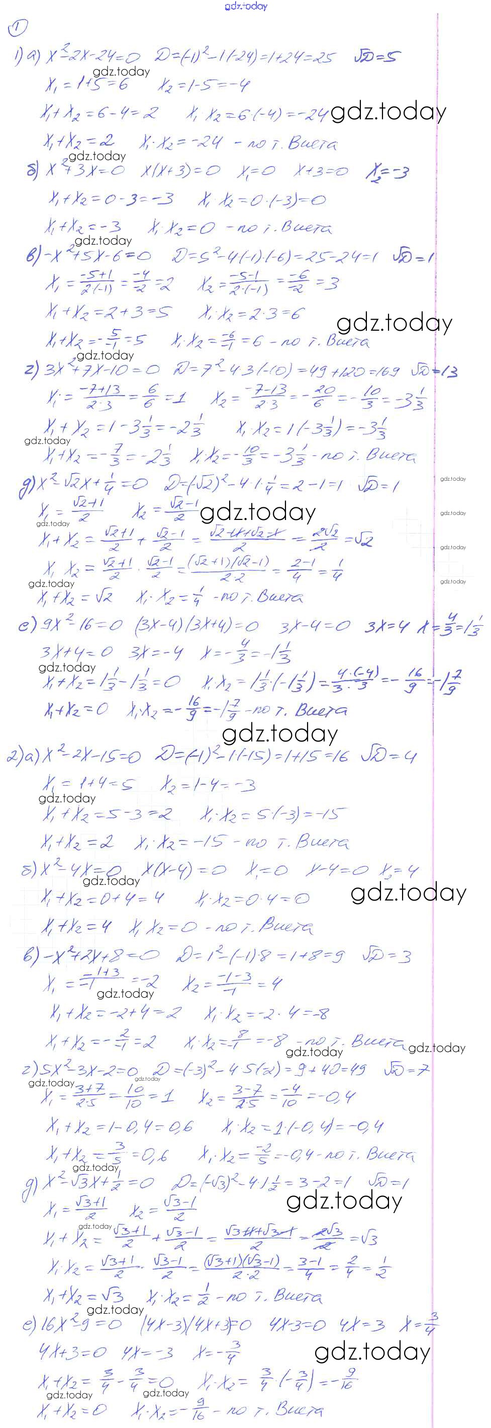На страницах сайта gdz.today вы найдете учебный и вспомогательный материал, направленный на улучшения знаний школьной программы. ГДЗ - онлайн мир знаний О-21. Теорема Виета Решение к обучающим работам 1 Дидактическим материалам по Алгебре для 8 класса Евстафьева, Карп Просвещение 2017